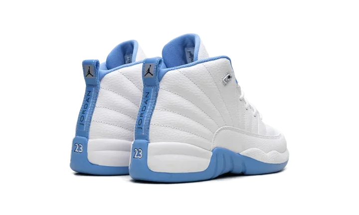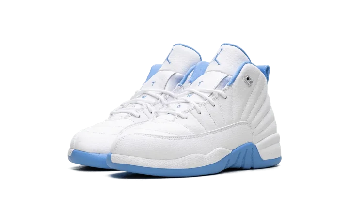 A timeless hoops icon for the youngest fans returns with the Air Jordan 12 Retro PS 'Melo' sneaker! This Preschool edition revives the clean white and University Blue colorway, originally worn by Carmelo Anthony during his rookie year. It features a premium tumbled leather upper with signature radiating stitch lines and a lizard-textured mudguard. With a comfortable foam midsole for lightweight cushioning, this shoe is the perfect way to give your little one a piece of Jordan heritage and Denver Nuggets team colors.