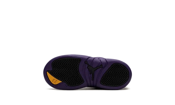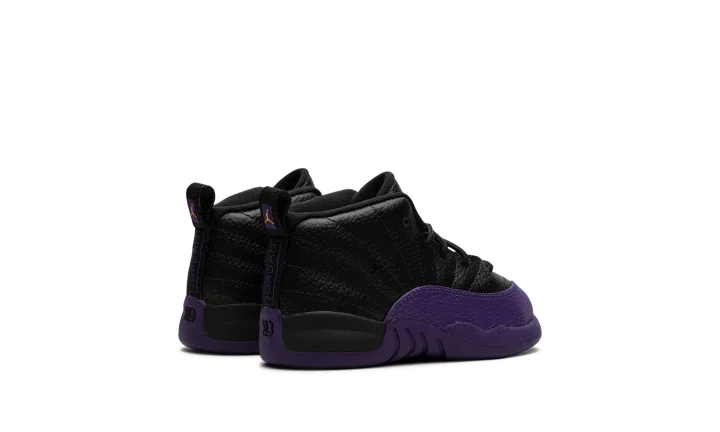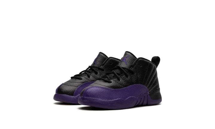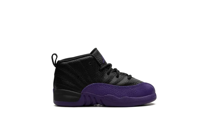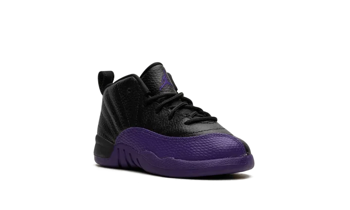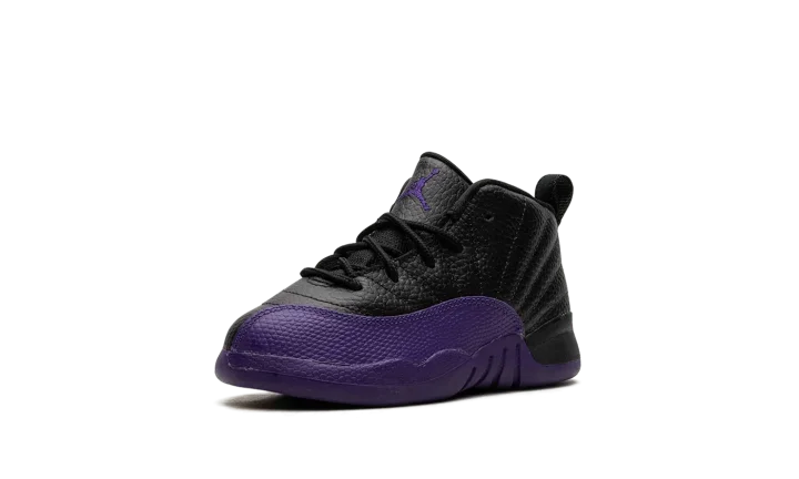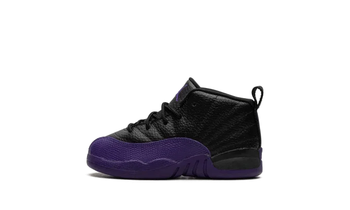 The Air Jordan 12 TD "Field Purple" is the toddler sizing of the retro basketball shoe in a colorway seemingly inspired by the Player Exclusive version of the Jordan 12 worn by former Sacramento Kings guard Mike Bibby. Based on the Jordan 12 Low that Bibby wore with the Kings in the early 2000s, the "Field Purple" features a black leather upper with a purple textured leather mudguard. The shoe is mounted on a purple sole. Release date: July 29, 2023