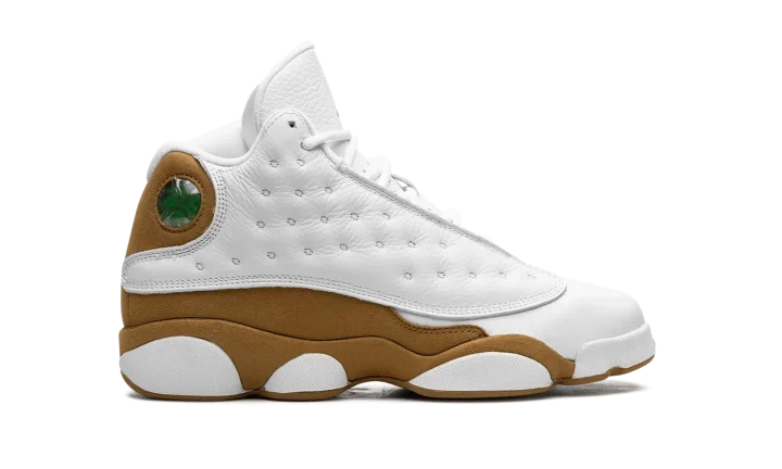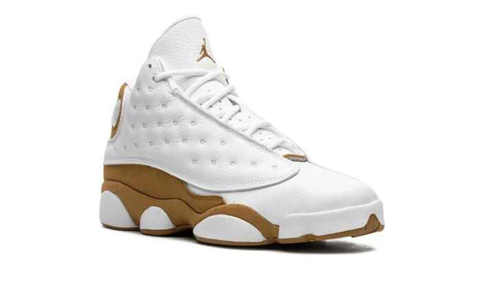 The Air Jordan 13 GS "Wheat" is the youth sizing of the 2023 re-release of the colorway of Michael Jordan's thirteenth signature basketball shoe that debuted in 2004. The "Wheat" Jordan 13 was one of the retro sneaker's first "lifestyle" colorways and certainly one of its most popular back in the day. Just like the original release, the 2023 version of the Jordan 13 "Wheat" is complete with a white dotted leather upper with a white leather toe. A Wheat suede panel wraps the heel and midfoot. More Wheat accenting appears on the midsole walls and rubber outsole. The final hit of Wheat detailing is seen on the Jumpman on the tongue. A holographic emblem on the ankle completes the look. Release date: November 21, 2023