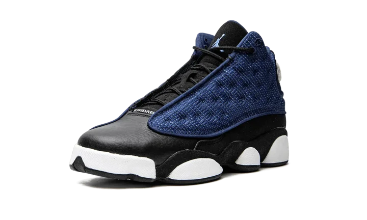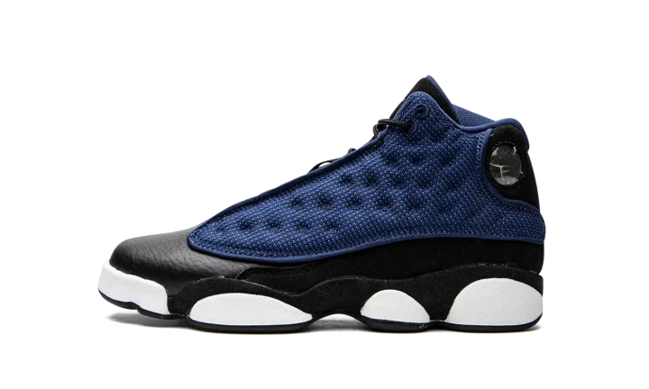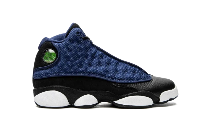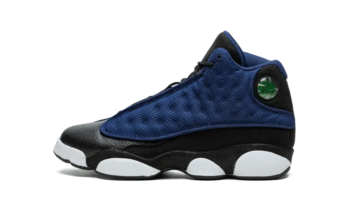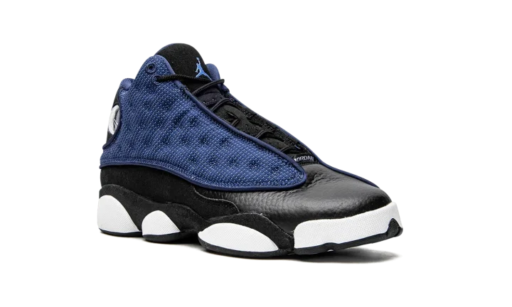 The Air Jordan 13 GS "Brave Blue" is the youth sizing of the high-top version of an original colorway of Michael Jordan's thirteenth signature shoe from 1998. The Jordan 13 released in this same colorway in '98, but as a low-top. Jordan Brand re-issued the Jordan 13 Low "Brave Blue" in 2017 before releasing this high-top iteration in full family sizing in April 2022. The modern "Brave Blue" looks identical to the original low-top version, albeit in high-top form. It features a reflective Brave Blue mesh upper with a black synthetic nubuck mudguard. Black leather is found on the toe. A holographic emblem appears on the collar and a "Jordan" tag is located on the vamp. Underfoot, white pods appear above a black rubber sole. Release date: April 29, 2022