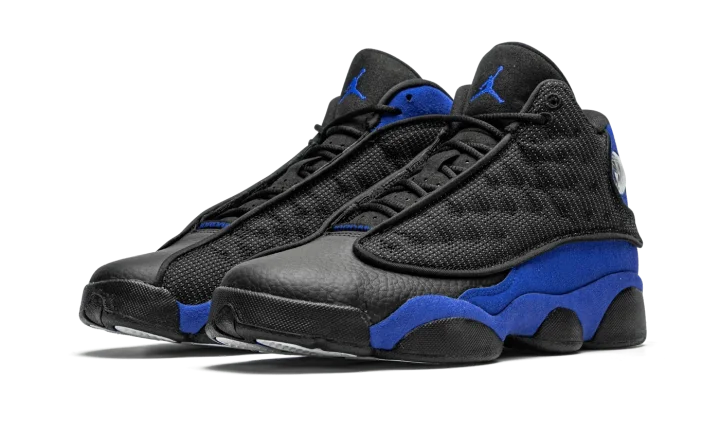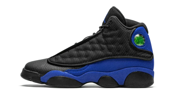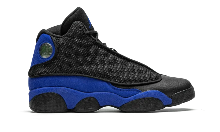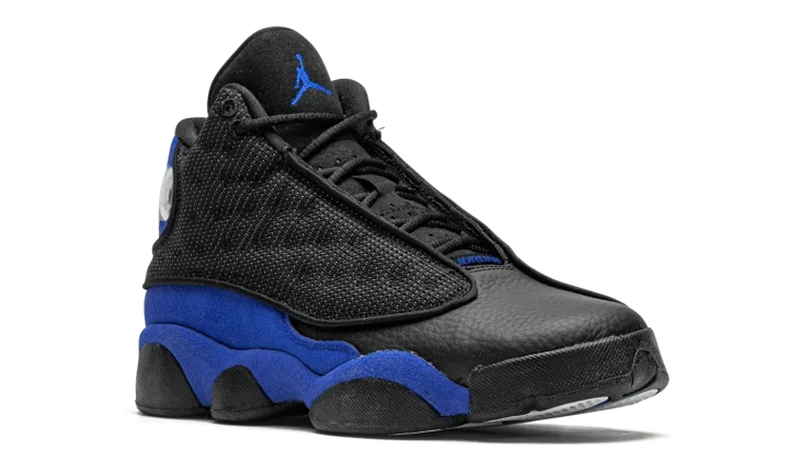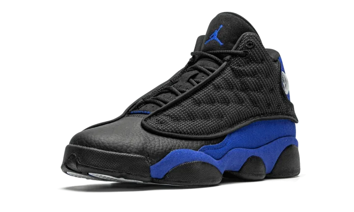 The Air Jordan 13 GS "Hyper Royal" is the youth sizing of Michael Jordan's thirteenth signature shoe dressed in a similar color pattern to that of the Player Exclusive design worn by Quentin Richardson's with the Orlando Magic. The "Hyper Royal" removes any of the "Q-Rich" branding that appears on Richardson's Air Jordan 13 PE, yet the look nonetheless channels the same energy of the coveted non-original colorway. Details include black leather on the toe and a black dotted mesh upper with reflective material that shines when exposed to light in the dark. That design element is culled from the original "Bred" iteration of the Jordan 13 worn by Michael with the Chicago Bulls. Hyper Royal suede can be found on the mudguard and heel. A holographic emblem appears on the collar and an embroidered blue Jumpman is stitched onto the black tongue. Release date: December 19, 2020.