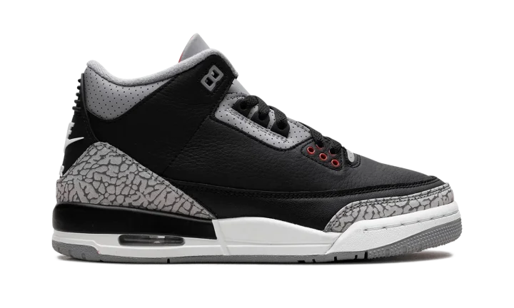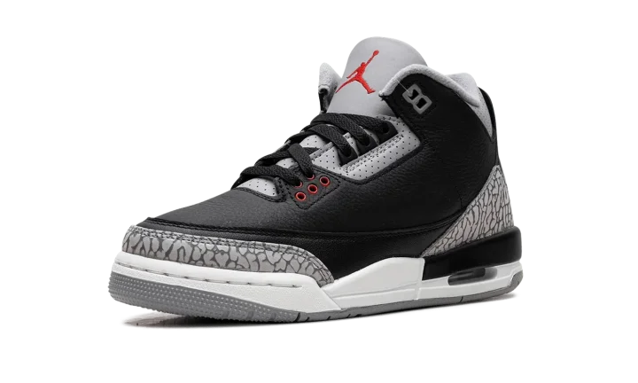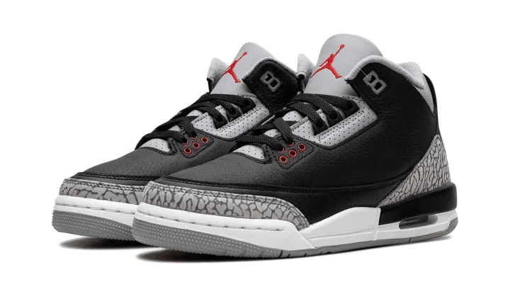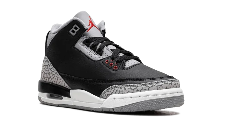 Step into a timeless style with the Air Jordan 3 Retro GS "Black Cement." This celebrated silhouette for young fans features a tumbled black leather upper with distinctive elephant print overlays. Experience comfortable Air cushioning and a design recognized for its enduring appeal, perfect for making a bold statement at school or on the streets.