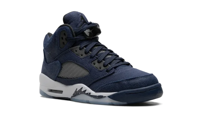 The Air Jordan 5 GS "Midnight Navy" is the youth sizing of Michael Jordan's fifth signature shoe in a colorway with a predominately navy-based look. The Jordan 5 debuted way back in 1990 and throughout the years, has been one of the most popular retro Air Jordan sneakers in Jordan Brand's collection due to collaborations with brands like Off-White and colorways like the "Midnight Navy." The upper features a Midnight Navy textile construction with smoky translucent netting on the mid-panel and tongue. A black Jumpman is embroidered on the tongue and on the heel. Underfoot, the white midsole's classic shark tooth detailing is designed in navy with white speckling. An icy blue translucent rubber outsole completes the look. Release date: November 10, 2023
