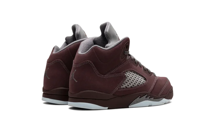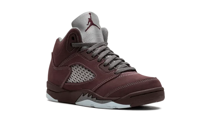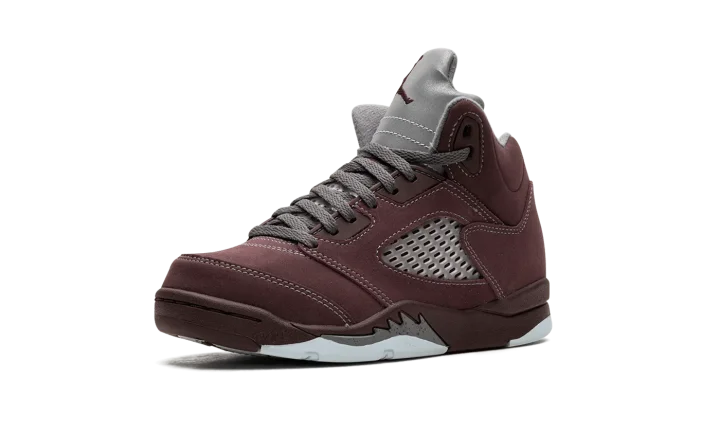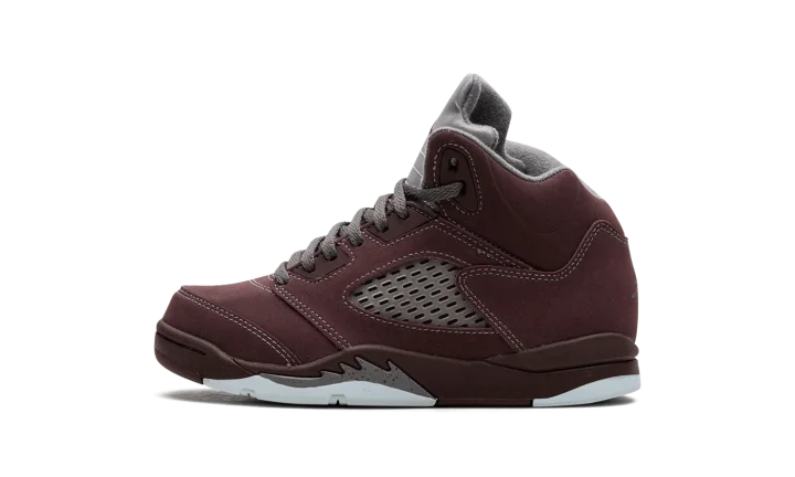 The Air Jordan 5 Retro SE PS "Burgundy" is preschool sizing of the modern re-release of the classic colorway that originally released in 2006. From Jordan Brand's "LS" or "lifestyle" collection from back in the day, the Jordan 5 "Burgundy" was one of the model's first non-original colorways, and one of its most popular releases of the 2000s. This 2023 edition is nearly identical to the original 2006 release. Deep Burgundy suede appears on the shoe's upper. Translucent netting is found on the mid-panel and on the tongue. A Deep Burgundy Jumpman appears on the silver reflective tongue and a silver Jumpman is embroidered on the heel. Light Graphite shark tooth detailing is found on the burgundy painted midsole. Release date: September 9, 2023