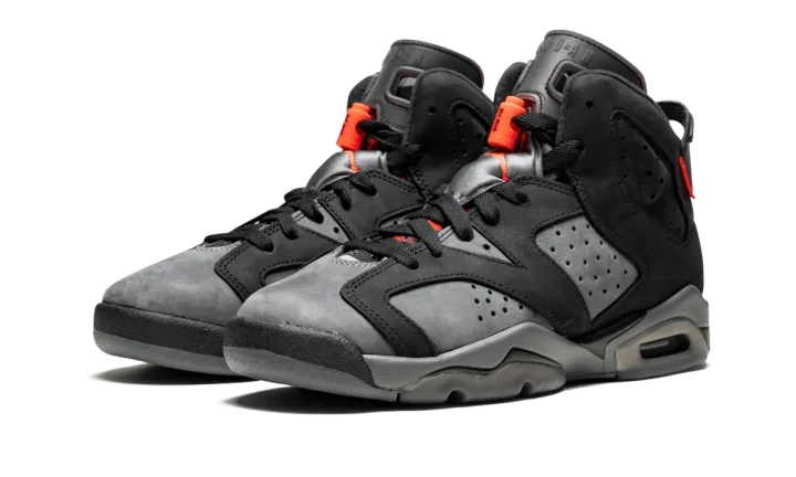 The Paris Saint Germain x Air Jordan 6 PS "Iron Grey" is the preschool sizing of the special collaboration between Jordan Brand and the French-based soccer club. PSG borrows graciously from the original "Carmine" Air Jordan 6's color blocking, featuring an upper comprised of contrasting black suede overlays and an Iron Grey base. Infrared accents are included for the Jumpman, lace lock, and side "Paname" tab that all add a pop of color against the shadowy design. Collaborative PSG and Air Jordan branding unique to this limited collaboration are found on the heel and insole to complete the clean design. The PSG x Air Jordan 6 "Iron Grey" for preschoolers was released on July 27th, 2019.