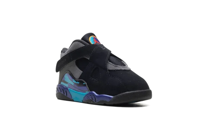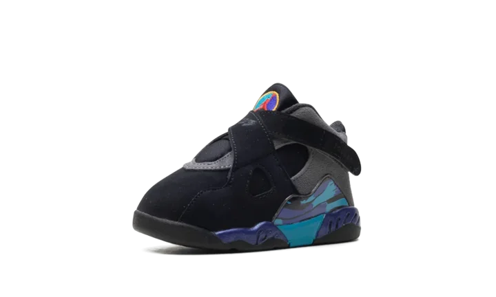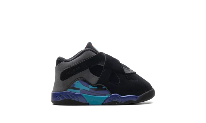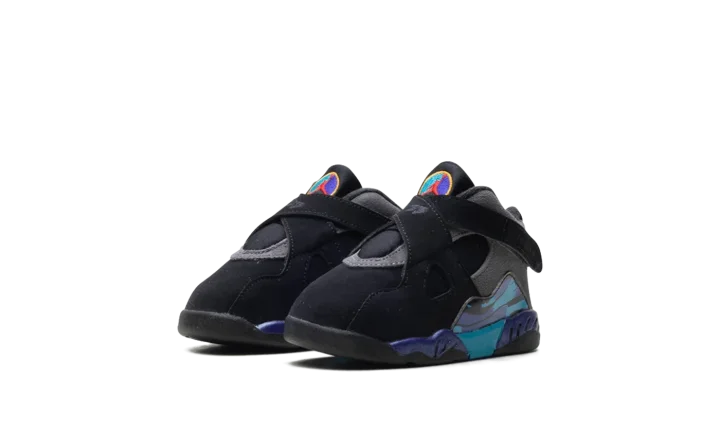 Start the next generation right with the Air Jordan 8 Retro TD, a miniature version of the iconic "Aqua (2025)" colorway. True to the 1993 original, this toddler shoe boasts a black nubuck upper and the unforgettable multi-color Aquatone and Bright Concord accents on the foam midsole. The signature crisscross straps and padded ankle collar ensure a snug, supportive fit, while the simple hook-and-loop closure makes them super easy to take on and off.