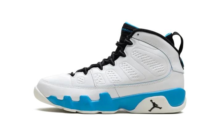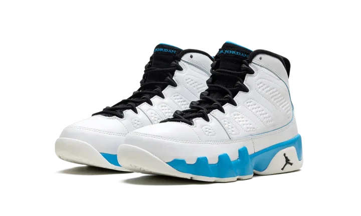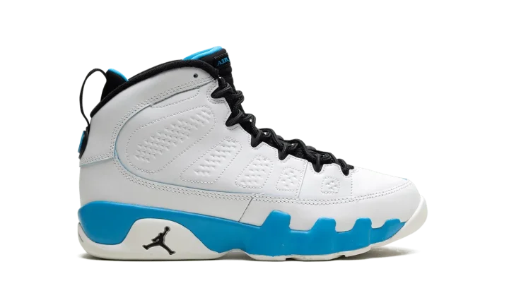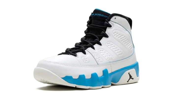 The Air Jordan 9 GS "Powder Blue" is the youth sizing of the original colorway of the retro basketball shoe that debuted in 1993 before it was brought back in 2010 and here, in 2024. The modern version of the "Powder Blue" Jordan 9 is crafted in the spirit of the original style from '93. Moreover, the "Powder Blue" theme is inspired by Michael Jordan's alma mater, the University of North Carolina. The shoe is complete with a white leather construction with Powder Blue accenting on the midsole. The inner lining is also featured in Powder Blue, as is the "Jordan" branding on the tongue, and the "globe" emblem on the heel. A small Jumpman on the side of the heel of the midsole completes the look of this classic sneaker.