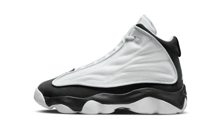 Hit the streets or the court with power in the Air Jordan Pro Strong GS "Off-Noir," a Grade School sneaker inspired by the legendary Air Jordan 13. This throwback mid-top returns with a sleek white and Off-Noir colorway, featuring a durable leather and synthetic upper for a locked-in fit and rugged containment. Responsive cushioning in the heel and forefoot, alongside a stable external plate, delivers all-day comfort and stability, making this kick a must-have piece of Jordan heritage.