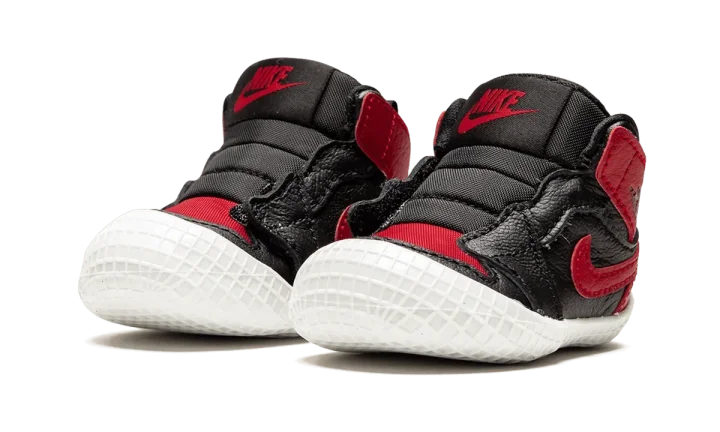 The Air Jordan 1 Crib Bootie is the perfect footwear for stylish babies, even before they can walk. Set in the same "Bred" colorway as the adult version, this pair sports the style's iconic black and red. Optimized for little ones, the elastic slip-on tongue and heel tab make them easy for parents to take on and off. The typical leather material of this Air Jordan 1 Crib Bootie is replaced with a softer, stretchier nylon.