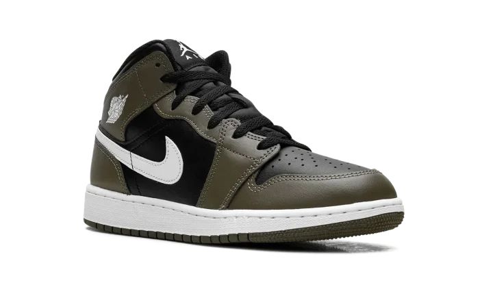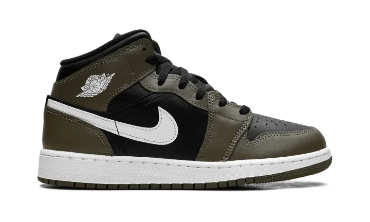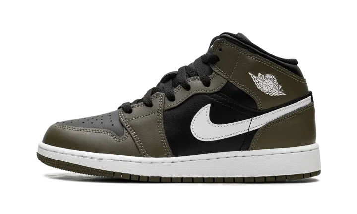 Jordan 1 Mid GS "Black White Olive"