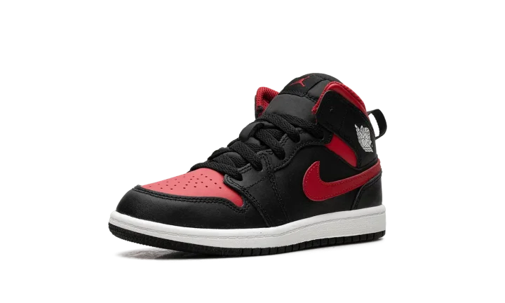 Get the smallest sneakerhead ready for game time with the Jordan 1 Mid PS 'Bred Twist' sneaker. This Preschool-sized shoe takes the legendary "Bred" colorway—a mix of black and Varsity Red—and gives it a fresh, modern twist. Built with durable leather and a cushioned midsole, this mid-top offers superior support and all-day comfort for active feet. It's the perfect way to introduce the next generation to the iconic style that started sneaker culture.