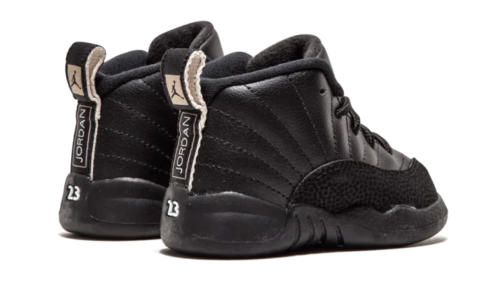 Inspired by a classic poster graphic from the ad campaign of the original Air Jordan 12, this all-new look released in 2016 features a luxe black leather upper with accents in grey and metallic gold. The clean version will go down as one of the best colorways for the AJ 12 ever. This listing is for Toddler sizing.
