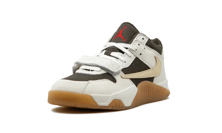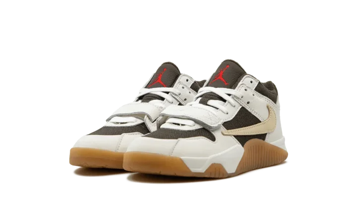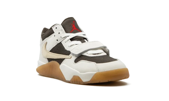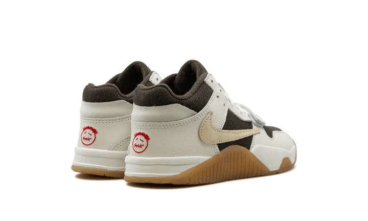 Introduce your little one to Travis Scott's signature style with the Jordan Jumpman Jack "Sail" PS. This preschool shoe marks the hip-hop star's debut signature design with Jordan Brand. Featuring details like a backwards Swoosh and smiley face logos, this unique sneaker combines a Muslin textile base, Sail leather overlays, and a backwards Swoosh. A standard leather Swoosh is on the medial side, and a Sail leather midfoot strap provides a secure fit. Scott's signature smiley face logo is embroidered in red on the heel.