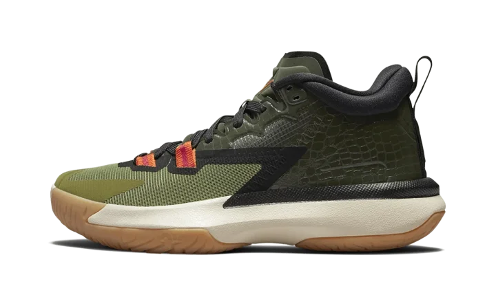 Engineered for young athletes, the Jordan Zion 1 GS "Let's Dance" basketball shoe is a Grade School-sized version of Zion Williamson's signature model. It features a responsive cushioning setup designed for energetic movement, stability, and control on the court. The "Let's Dance" colorway is characterized by vibrant, eye-catching colors and graphic details, making it a stylish performance shoe for kids who want to mimic Zion's explosive play. The shoe is built with supportive materials for a locked-in feel, perfect for youth basketball players.