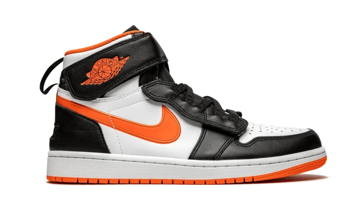The Air Jordan 1 High Flyease "Turf Orange" is a dead ringer for Michael Jordan's first signature shoe, but this style relies on accessibility and an easy entry-exit as a point of differentiation. The high profile upper is completely composed of leather with a white base, black overlays, and orange accents. A white midsole and orange outsole round off the color palette. The highly innovative entry system consists of a zipper, Velcro strap, and elastic laces that enable it to be put on and taken off with a single hand. Due to its black, white, and orange color palette, this colorway has also picked up the nickname "Shattered Backboard."
