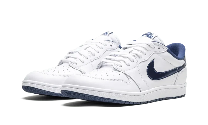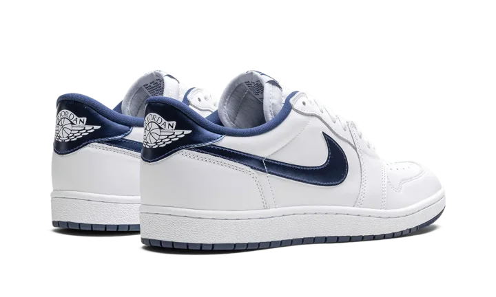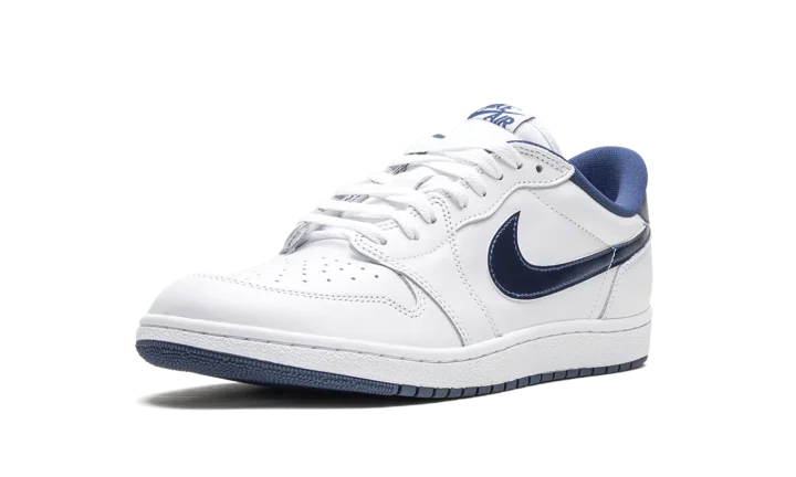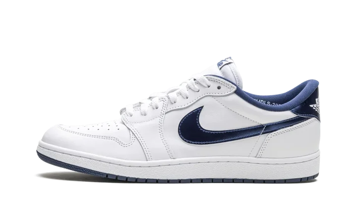 The Air Jordan 1 Low '85 "Metallic Navy" is the remastered edition of an original colorway of Michael Jordan's first signature shoe in low-top form. The Jordan 1 Low '85 is a premium reissue of the Jordan 1 Low, designed with special attention to the details of the original 1985 release. This "Metallic Navy" colorway is one of the original—and very rare—colorways of the Jordan 1 Low from 1985. The modern "Metallic Navy" features a Summit White leather construction with Metallic Navy leather Swoosh branding on the sides. A classic "Wings" logo is found on the Metallic Navy heel tab, and old school "Nike Air" and Swoosh branding appears on the tongue tag. A white midsole and navy outsole complete the OG look. Release date: March 2024