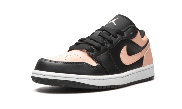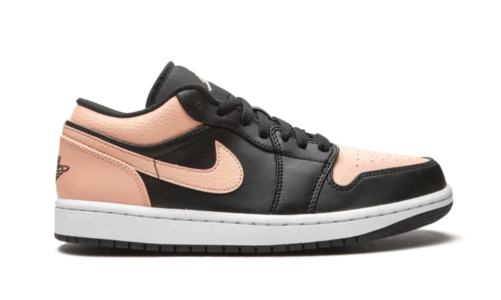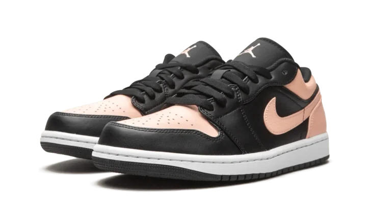 The Air Jordan 1 Low "Crimson Tint" is a stylish look for the low-top version of Michael Jordan's first signature shoe. Executed in a two-tone black and Crimson Tint color block, the "Crimson Tint" is a summer-ready colorway for the iconic silhouette. The forefoot, eyelets, and mid-panel feature a black leather construction. Jordan Brand places a Crimson Tint leather Swoosh on either side and Crimson Tint leather on the perforated toe, collar, and heel. A black embroidered "Wings" logo is stitched onto the back of the shoe and a Crimson Tint Jumpman appears on the black nylon tongue tag. A simple white rubber midsole and contrasting black outsole round out the look.