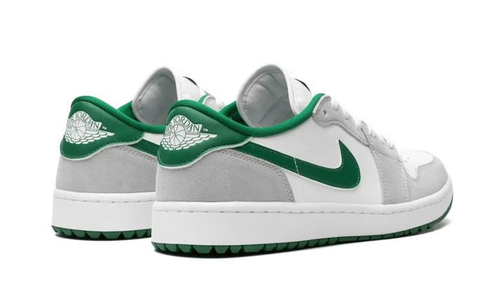 The Air Jordan 1 Low Golf "Pine Green" is a colorway of the golf shoe with green details. Inspired by the Jordan 1 Low, the Jordan 1 Low Golf features nubs on the outsole that provide traction on the fairway. As for the colorway at hand, the shoe features a white leather upper with Light Smoke Grey suede overlays. A Pine Green leather Swoosh appears on the sides, while more Pine Green detailing can be found on the inner lining, and Jumpman and "Golf" logos on the tongue. Underfoot, a white rubber midsole and Pine Green rubber outsole with a golf-specific traction pattern complete the look. Release date: March 22, 2024