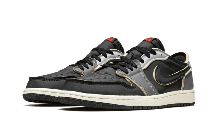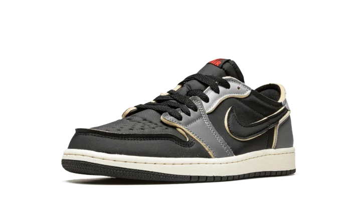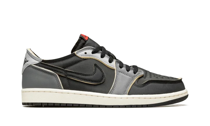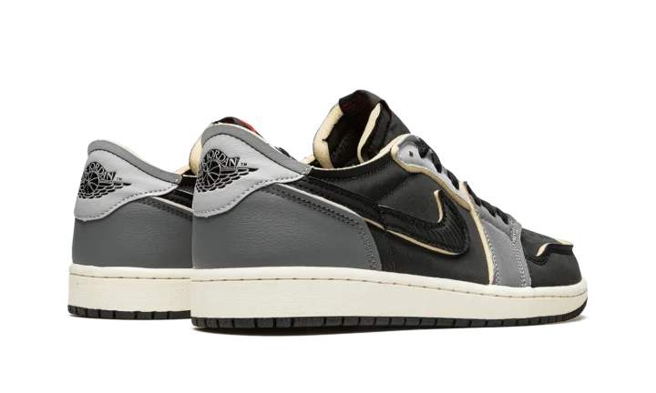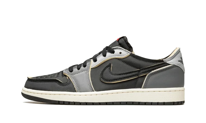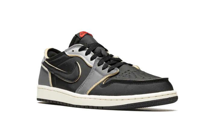 The Air Jordan 1 Low OG EX "Black/Dark Smoke Grey" is a neutral-based colorway of the low-top shoe with a "DIY" vibe. On the "Black/Dark Smoke Grey," Jordan Brand opts to give the popular Jordan 1 Low OG several modifications that bring an unfinished aesthetic to the shoe, specifically by placing exposed foam around the edges of each overlay panel, the collar, and the Swoosh logos. The perforated toe and mid-panel are designed in black leather while the forefoot overlay appears in grey leather. A lighter shade of grey leather is found on the eyelets, and Dark Smoke Grey leather makes its way onto the heel. Classic "Wings" branding appears on the grey leather heel tab. Release date: August 26, 2022