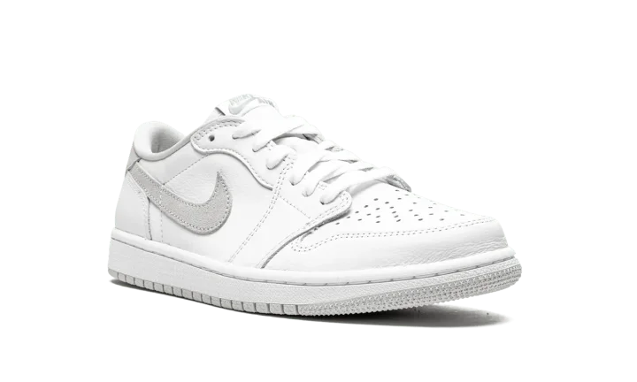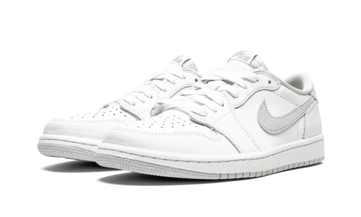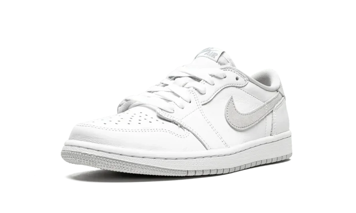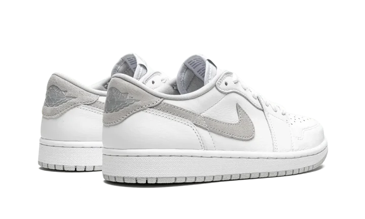 The Air Jordan 1 Low OG "Neutral Grey" is a June 2021 re-release of an original colorway of the low-top version of Michael Jordan's first signature shoe that debuted in 1985. While not quite a true one-to-one remake of the first low-top "Neutral Grey," the June 2021 release is nonetheless a highly covetable look for the alternate Jordan 1 Low. Unlike the 1985 and succeeding 2015 Europe-only release of low-top "Neutral Grey," the modern incarnation utilizes Neutral Grey-colored suede materials on the Swoosh and heel tab. The upper displays a crisp white leather construction. Grey "Nike Air" and Swoosh detailing can be found on the white nylon tongue tag stitched onto the white nylon tongue. Jordan Brand equips the "Neutral Grey" with a white rubber midsole and grey outsole. Release date: June 24, 2021.