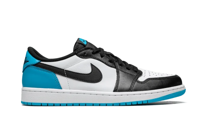 The Air Jordan 1 Low OG "UNC" is a colorway of the low-top version of the classic basketball shoe that shows appreciation for Michael Jordan's alma mater, the University of North Carolina. The Jordan 1 Low OG "UNC" salutes the UNC Tar Heels by featuring the school's team uniform colors on its design. The Jordan 1 Low OG is based on the original silhouette of the low-top basketball shoe from 1985, and it features panels and branding that are consistent with the original design. As for this colorway, white leather forms the base of the upper. The overlays and Swoosh branding on the sides are designed in black leather. The heel panel appears in University Blue leather, as does the tab with classic "Wings" branding on the back of the shoe. Release date: July 29, 2022