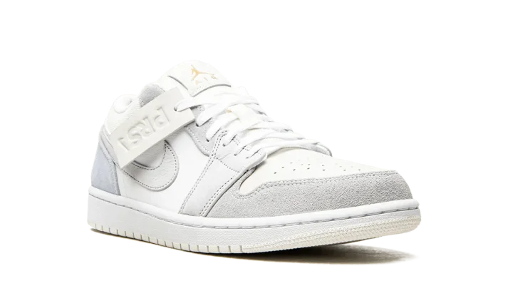 The Air Jordan 1 Low "Paris" is a Europe-exclusive colorway of Michael Jordan's first signature shoe that was part of February 2020's "City Pack." The "Paris" appears on the Air Jordan 1 Low silhouette and is inspired by the landscape of France's capital city. Details include airy Sky Grey overlays on the toe cap, forefoot, and eyelets. The grey hue appears on the Swoosh detailing found on either side of the shoe. A crisp variety of smooth white leather dots the mid-panel while grey leather appears on the perforated toe. Metallic Gold Jumpman detailing on the nylon tongue tag feeds the model's elegant styling. Tonal embossed "Wings" branding is located on the back of the shoe on the light blue suede heel overlay. A PRS branded leather hang tag in reference to the French city completes the upscale design of this limited edition Jordan 1 Low. Release date: February 22, 2020.