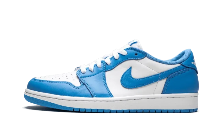 The Eric Koston x Air Jordan 1 Low SB "UNC" is a special release of the Jordan 1 Low by Nike SB pro Eric Koston. The skate legend brings the original "UNC" color scheme to the Jordan 1 Low that has been slightly modified to be ideal for skateboarding. The construction features an all-leather upper in the recognizable white and powder blue combination first seen on the original Jordan 1 High from 1985. The interior is bolstered with extra padding for protection while skating. The Nike SB logo is present on the tongue, while a classic Air Jordan wings logo is found printed on the heel. The Eric Koston x Air Jordan 1 Low SB "UNC" released on August 10, 2019 in limited quantities.