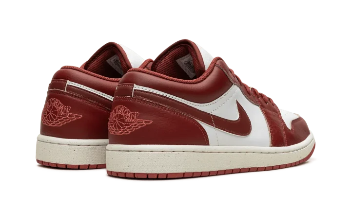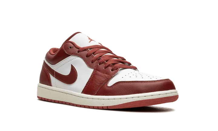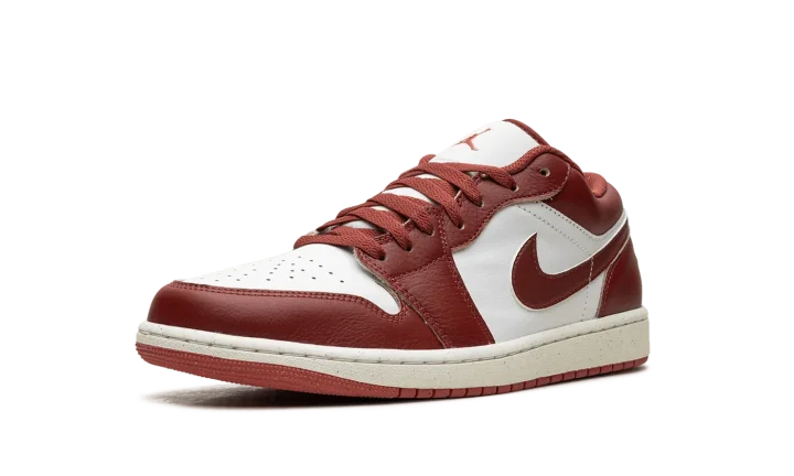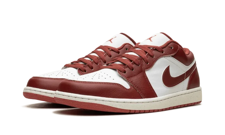The Air Jordan 1 Low SE "Dune Red" is a two-tone colorway of Michael Jordan's first signature sneaker in the low-top style. The Jordan 1 Low was first released in 1985, and is now a popular lifestyle shoe due to the appeal of colorways like the "Dune Red." The upper features a white leather base and Dune Red leather overlays and Swoosh branding. A lighter shade of red is used on the embroidered "Wings" logo on the heel. Additional details include a Dune Red Jumpman on the tongue, a speckled Sail midsole, and a red outsole. Release date: January 20, 2024