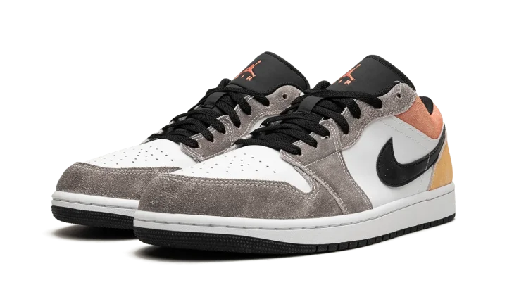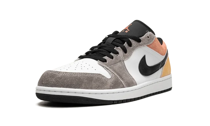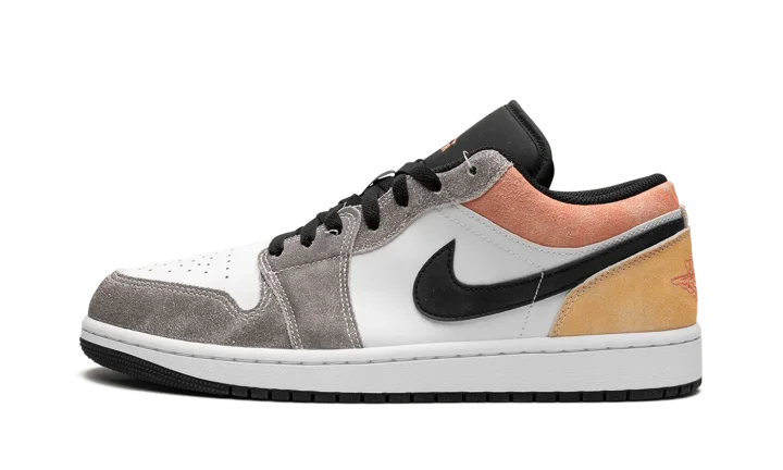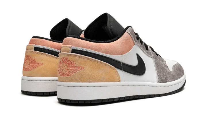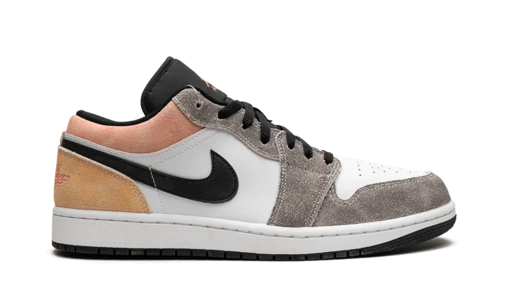 The Air Jordan 1 Low SE "Flight Club" is a colorway of the retro basketball shoe with multi-color overlay panels. Yet another unique look for the always-popular Jordan 1 Low, the "Flight Club" features a white leather base with grey suede on the toe cap, forefoot, and eyelets. Faded pink suede can be found on the collar and faded orange suede appears on the heel. A black leather Swoosh logo is located on the sides. Classic "Wings" branding is embroidered on the heel. A pink Jumpman is embroidered on the black nylon tongue. Release date: May 9, 2023