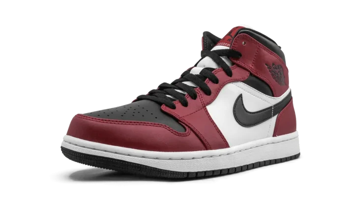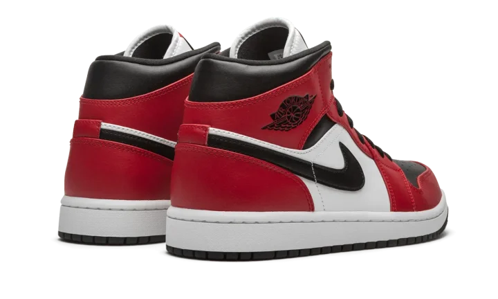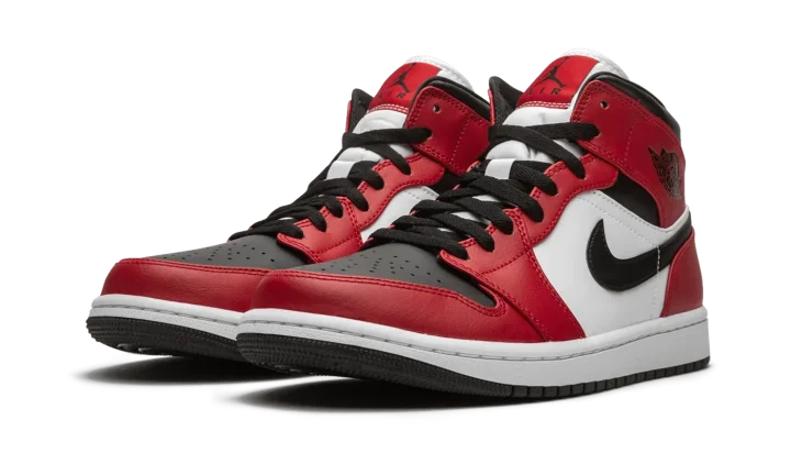 The Air Jordan 1 Mid "Chicago Black Toe" effectively integrates both the "Chicago" and "Black Toe" colorways into one on the desirable mid-top version of Michael Jordan's first signature shoe. Since 2019, Jordan Brand has placed a renewed emphasis on creating Jordan 1 Mids that are equally as covetable as the original high and low-top editions of the shoe, and this "Chicago Black Toe" is among the finest examples. Black perforated leather and contrasting red leather overlays on the forefoot and toe cap combine to formulate the "Black Toe" look. Blazing red leather also graces the eyelets, collar, and heel, contrasting the white leather mid-panel and white nylon tongue. Black Swoosh branding appears on either side and black Wings detailing dots the collar. A black Jumpman covers the red nylon tongue tab. The white midsole is contrasted by a black outsole. The Air Jordan 1 Mid "Chicago Black Toe" was released on April 1, 2020.