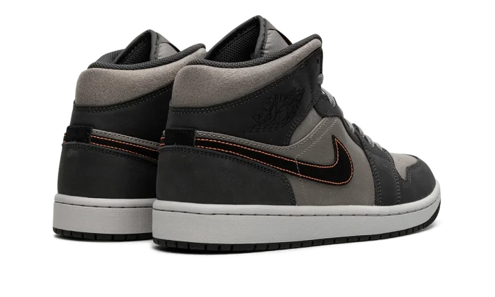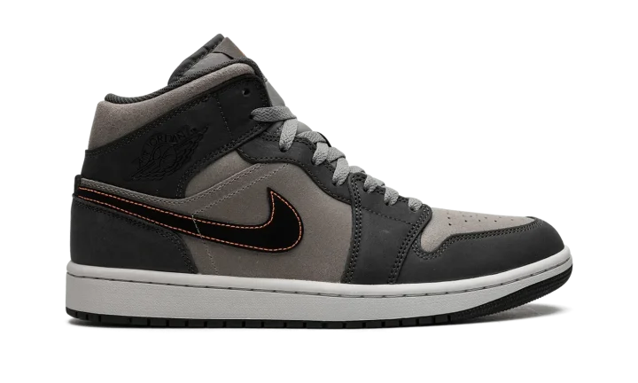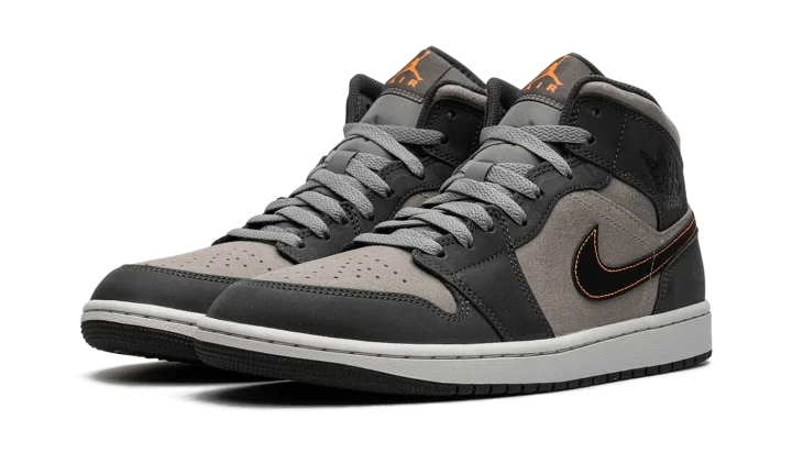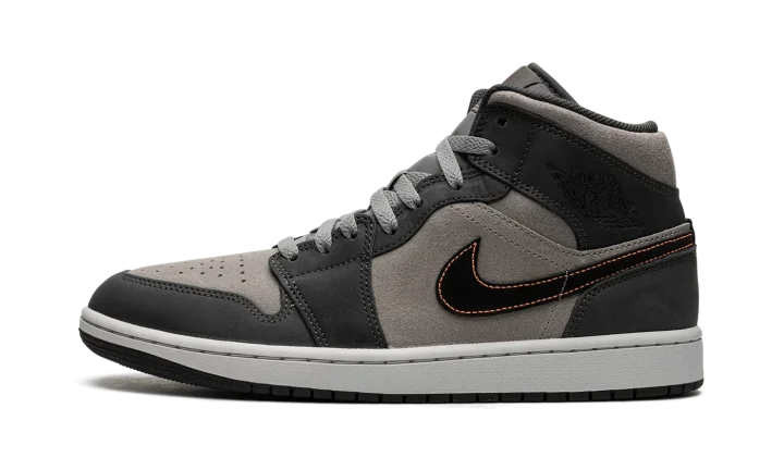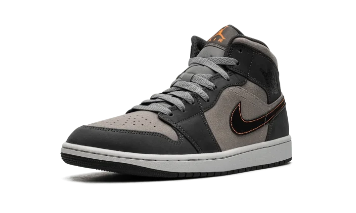 The Air Jordan 1 Mid SE "Night Stadium" is a colorway of the alternate mid-top silhouette of Michael Jordan's first signature shoe inspired by Halloween. While no Halloween branding or decorations are seen on the "Night Stadium," the sneaker nonetheless sources inspiration from the spooky holiday with its black, grey, and orange color scheme—the colors most commonly associated with Halloween. The base is designed in grey suede while the overlays are seen in a darker shade of grey nubuck. A black leather Swoosh with Total Orange contrast stitching appears on both sides. Black "Wings" branding is found on the collar while an orange Jumpman is paired with an "Air" logo on the tongue tag. The white midsole and grey outsole complete the look. Release date: October 1, 2023