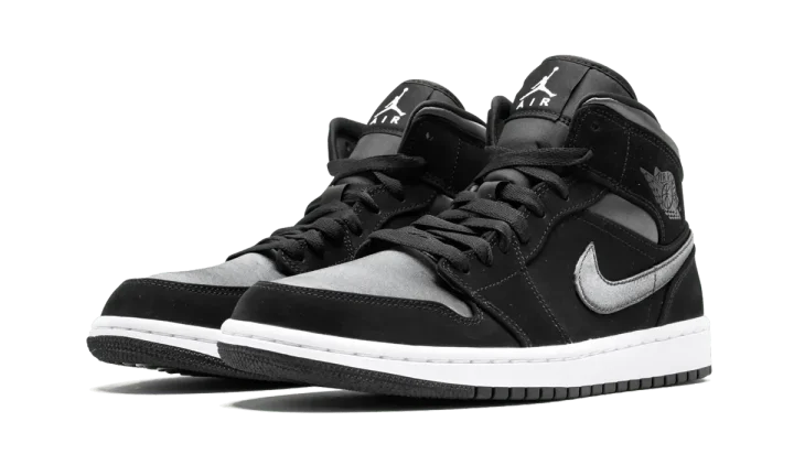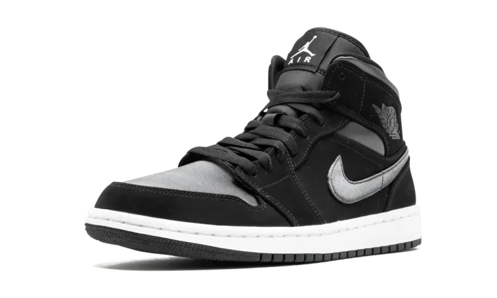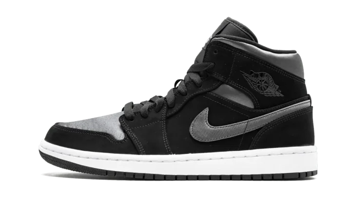 The Air Jordan 1 Mid SE Nylon is a remixed version of the Air Jordan 1 Mid design. Neutral palettes on Air Jordan 1 models let the sneaker's classic silhouette do the talking, and the same can be said with this Air Jordan 1 Mid SE. Reminiscent of the Aleali May Air Jordan 1 released in 2017, the Air Jordan 1 Mid SE "Nylon" relies heavily on Oakland Raiders-esque vibes, and features a silver nylon material on the toe, Swoosh logo, and collar. Black nubuck overlays, laces, and tongue further adds to the shadowy appeal of the sneaker. The Air Jordan 1 Mid SE "Nylon" released Summer 2019.