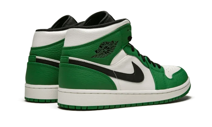 The Air Jordan 1 Mid "Pine Green" was part of the "Rivals Pack" that featured versions of the Jordan 1 in color schemes inspired by rivals of Michael Jordan and the Chicago Bulls. This colorway references the Boston Celtics in Pine Green with Sail and black accents that calls to mind Jordan and the Bulls' heated contests with the Larry Bird-led squad. The shoe is constructed with soft full-grain leather for a premium look. The Air Jordan 1 Mid "Pine Green" released in December 2018.