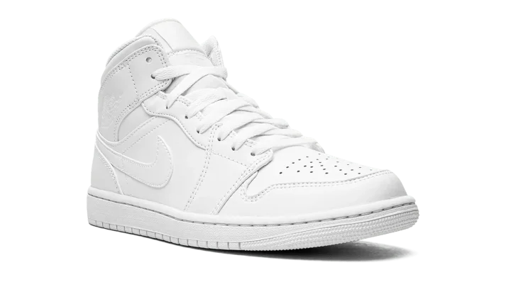 The Air Jordan 1 Mid "Triple White" is a monochromatic white colorway of the popular lifestyle shoe that excels in versatility. Designed to be worn in a variety of settings and outfits, the Jordan 1 Mid "Triple White" features a white leather construction with tonal leather overlays and Swoosh branding. The debossed "Wings" logo on the collar also appears in white. As does the Jumpman-branded nylon tongue tag on the white nylon tongue. Underfoot, a white rubber sole completes the look.