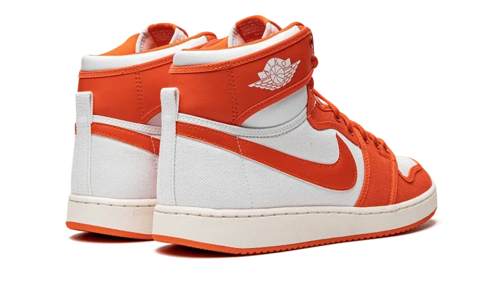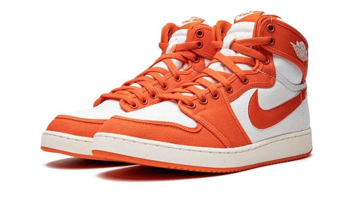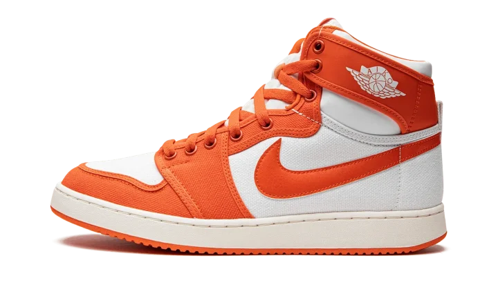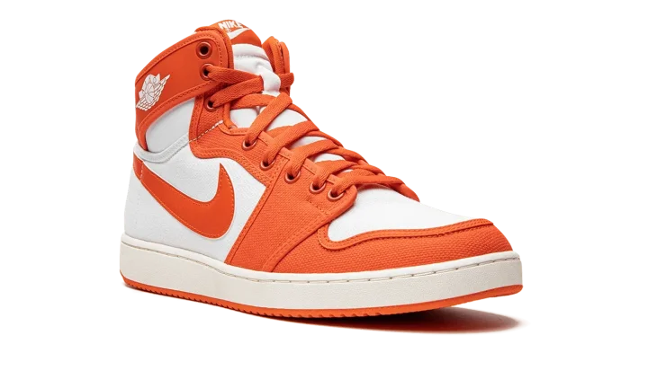 The Air Jordan 1 KO "Syracuse" is a colorway of the alternate version of Michael Jordan's first signature shoe inspired by an original Nike Dunk from 1985. The Jordan 1 KO returned in a big way in 2021, when the model's original "Chicago" colorway re-released in true-to-original form for the first time since 1985. The model was also released in makeups like the "Storm Blue," and used in a high-profile collaboration with Billie Eilish, as well. Here, the "Syracuse" colorway nods to the Dunk's classic "Syracuse" makeup with a two-tone, white-and-orange color block, which ties into the Air Jordan 1 KO's vintage aesthetic. The upper is constructed from durable white canvas with Rush Orange canvas overlays. An orange leather Swoosh appears on either side and a special "AJKO" Wings logo graces the collar. Rush Orange-colored metal eyelets complete the look. Release date: August 5, 2022