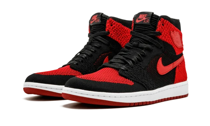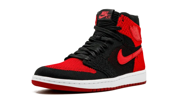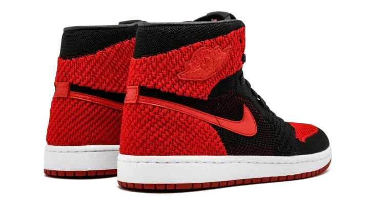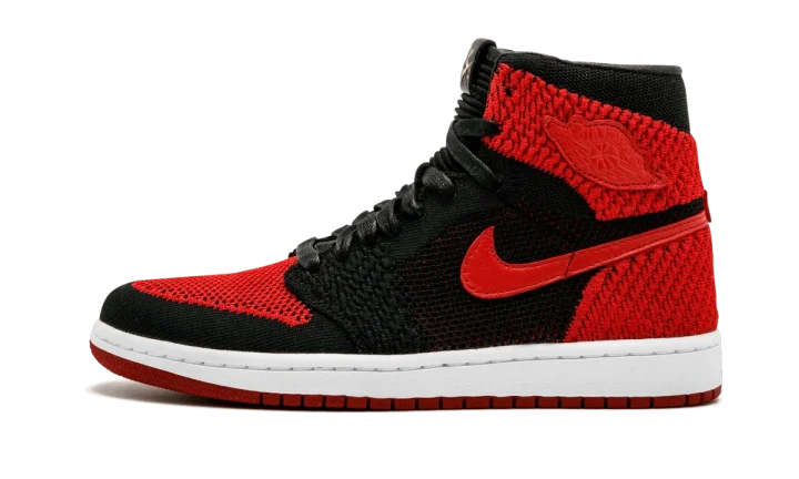 The "Banned" Air Jordan 1 is quite possibly the best and most important sneaker in history, as it set a tone for the trends in athletic footwear that followed. It only makes sense that Jordan Brand would merge the model with Nike's innovative Flyknit technology to introduce an entirely new marvel, the Air Jordan 1 Flyknit. This pair features the iconic black and red color-blocking, with the entire upper featuring a woven design. Leather appears on the Swoosh, heel, and the Wings logo on the ankle. Additional Nike branding appears on the tongue, which is also leather.