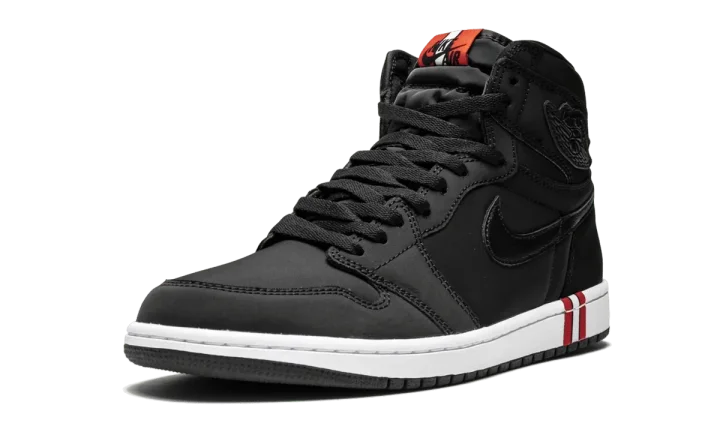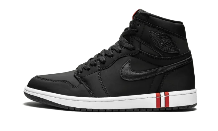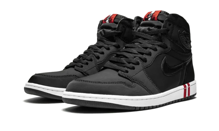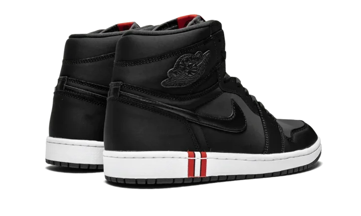 The PSG x Air Jordan 1 High is the second shoe to release as part of the 2018 collaboration between the Paris Saint-Germain Football Club and the Jumpman. In a color scheme inspired by the French soccer team's uniforms, the premium construction features the iconic silhouette in an all-black upper constructed in smooth satin with semi-glossy leather for the Swooshes and "Wings" logo patches. The white midsole is accented with a black, red, and white stripe, which is mirrored on the "Nike Air" tongue tag. The PSG x Air Jordan 1 High is a major score for Air Jordan collectors and fans of the renowned soccer team.
