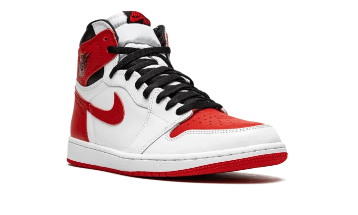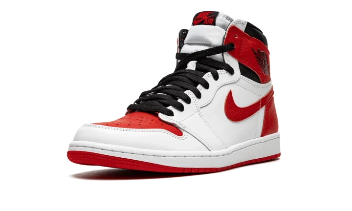 The Air Jordan 1 High OG "Heritage" is a Spring 2022 release of the vintage basketball shoe that shows appreciation for the Chicago Bulls, Michael Jordan's former basketball team in the NBA. The "Heritage" is yet another stellar white, red, and black colorway of Jordan's first signature shoe, and one that also looks to the same 1985 Jordan 1 Sample shoe that inspired the Travis Scott x Fragment x Air Jordan 1 from 2021 as it features the same color block, albeit in different colors, as that popular three-way collaboration. University Red leather appears on the perforated toe, collar, heel, and Swoosh branding. Contrasting white leather can be found on the overlays on the forefoot and eyelets and on the mid-panel, as well. A black "Wings" logo is located on the collar and red "Nike Air" and Swoosh branding dots the black tag on the white nylon tongue. Underfoot, a white midsole and University Red rubber outsole complete the look. Release date: April 9, 2022