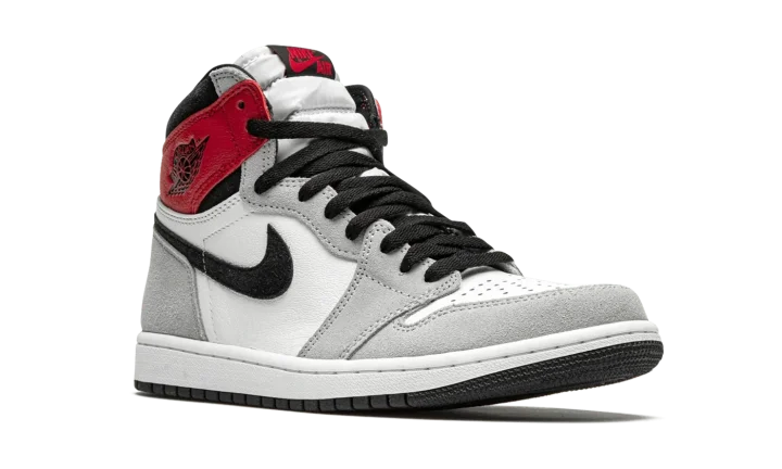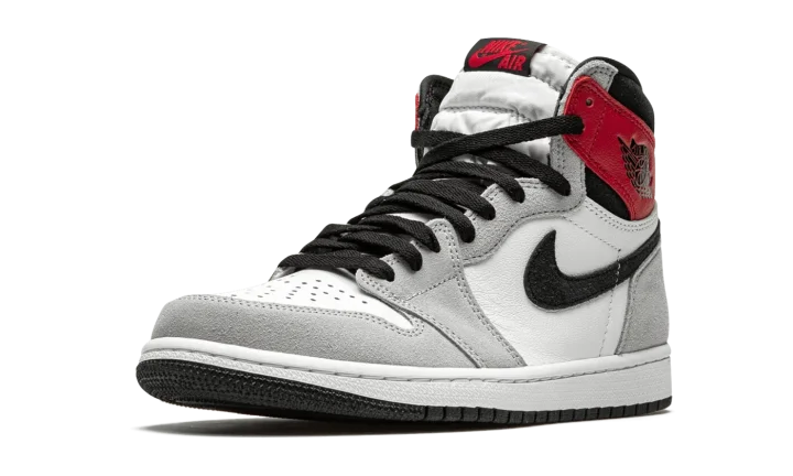 The Air Jordan 1 "Light Smoke Grey" is a Summer 2020 release that captures the attention of sneaker fans and collectors for its ultra wearable color scheme. Both original and non-original Jordan 1 designs are fueling the shoe's popularity decades after it was first introduced by Nike and Michael Jordan, and this "Light Smoke Grey" look is full proof of that sentiment. The upper combines a clean white leather base that is visible on the perforated toe and mid-panel with Light Smoke Grey suede overlays on the forefoot, eyelets, and heel. Neutral undertones continue on the black leather Swoosh on the mid-panel and black cotton laces. A black Wings logo appears on the red leather overlay sits above the black leather collar. Classic red "Nike Air" detailing is found on the black tongue tab of the white nylon tongue. Release date: July 11, 2020.