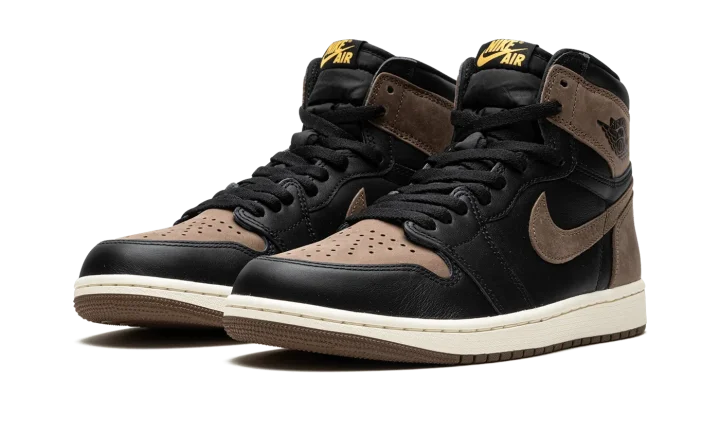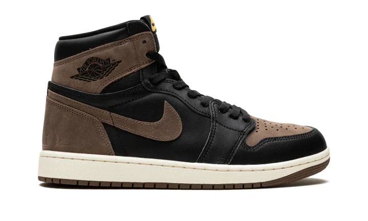 The Air Jordan 1 High OG "Palomino" is a premium lifestyle look for Michael Jordan's first signature sneaker. The iconic silhouette is presented in a classic and familiar color block, this time featuring a muted and versatile combination of black and dark brown. The brown, or "Palomino," shade is found on the soft nubuck overlays at the heel, toe, and side Swooshes. The rest of the upper is constructed in black leather. A hit of gold is seen on the "Nike Air" tongue tag logo, and an off-white midsole and brown outsole complete the clean look of this Jordan 1 High. Release date: September 2, 2023