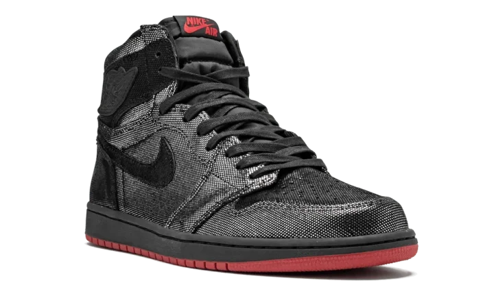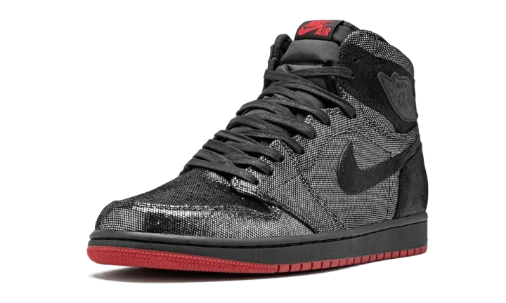 The Air Jordan 1 High "SP Gina" is a special colorway of the iconic silhouette in collaboration with Shoe Palace. The colorway honors Virginia Wright, better known as SP Gina, a beloved teacher and Air Jordan fanatic from San Jose, California. SP Gina is a local hero, known for her work as an elementary school teacher helping educate and inspire children. She is also a self-proclaimed sneakerhead, who has developed a close relationship with her local Shoe Palace store in San Jose. Shoe Palace honored her with this limited edition colorway of the Air Jordan 1, featuring a black textile upper with a unique metallic texture. Red accents are found for the tongue's Nike Air logo and the outsole. The Air Jordan 1 "SP Gina" released on May 25, 2019 and was sold exclusively by Shoe Palace.