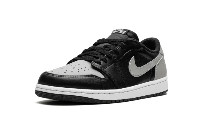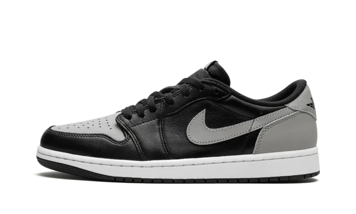 The Air Jordan 1 Low OG "Shadow" is a classic colorway of the retro basketball shoe that debuted on the original Jordan 1 in 1985. Appearing on the Air Jordan 1 High in '85, the "Shadow" colorway was released on the Jordan 1 Low OG model in 2015 and again in 2024. The modern version of the style is similar to the original "Shadow" colorway from back in the day. The upper features a Medium Grey leather base contrasted with black leather overlays. A Medium Grey leather Swoosh appears on the mid-panel and a black "Wings" logo is found on the heel. Classic "Nike Air" detailing can be seen on the tongue tag. A white midsole and black outsole complete the look. Release date: May 10, 2024