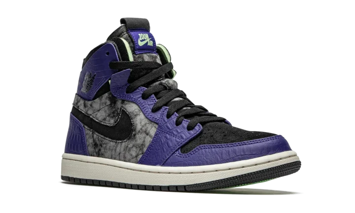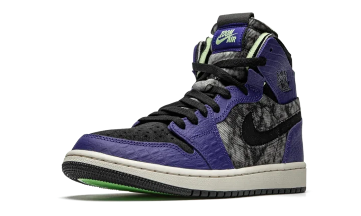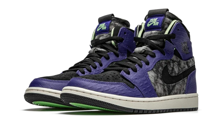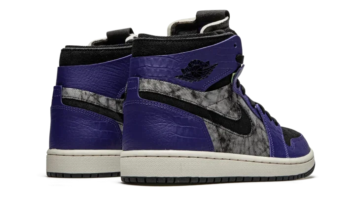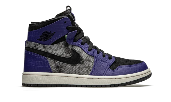 The Air Jordan 1 Zoom Comfort "Bayou Boys" is a special, New Orleans-inspired colorway of the lifestyle silhouette in honor of Jordan Brand athlete Zion Williamson. Multiple materials—textile, shaggy suede, crocodile-printed leather—make up the textural upper in shades of murky grey, black, and purple. The Jordan design team also inserts special details from the New Orleans Pelicans player, including "Bayou Boys" text on the inner tongue and a special printed insole. The Air Jordan 1 Zoom Comfort design comes complete with a Zoom Air cushioning midsole and multicolor rubber traction outsole.