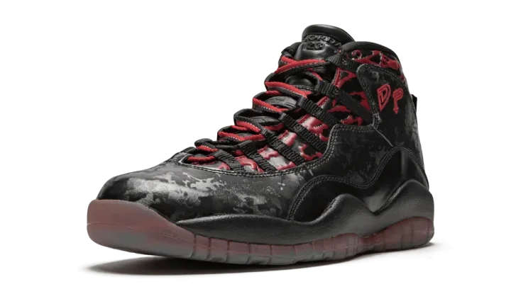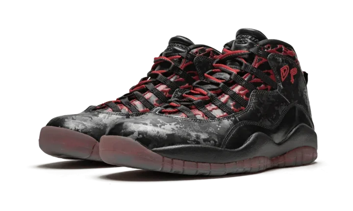 Part of the 2013 Nike Doernbecher Freestyle collection, the Air Jordan 10 got one of its boldest makeovers ever. Designed by patient Daniel Pena, the shoe features a glossy camo print inspired by his love of video games, while the red accents and a clear outsole complete the look.