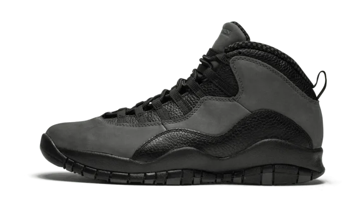 The Air Jordan 10 Retro "Shadow" is one of the most renowned colorways of Michael Jordan's 10th signature shoe. The Air Jordan 10 "Shadow" made a comeback in 2018. The stealthy-looking Jordan has a dark grey nubuck upper that is accented with black details around the mudguard and eyelets. The Air Jordan 10s have a checkerboard lining that adds an appealing pattern. As with all Air Jordan 10s, the outsoles are etched with a list of Michael Jordan's career accomplishments.