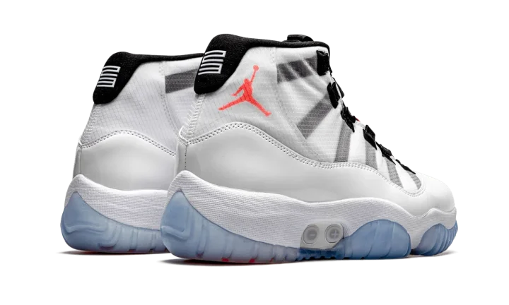 The Air Jordan 11 Adapt "White" is an updated version of Michael Jordan's eleventh signature shoe with Nike's futuristic Adapt self-lacing technology. Like Nike Adapt models, the Jordan 11 Adapt allows the wearer to loosen or tighten the shoe via Nike's Adapt app or by manually pressing the buttons on the midsole. As far as the design of the shoe, the overall look is similar to the original Air Jordan 11, but now incorporates the new wire lacing system. Other design details include a smooth white patent leather mudguard and white mesh around the eyelets. A red Jumpman appears on the collar beneath a semi-translucent film wrapped around the entire upper. The white midsole is raised slightly compared to the original design of the Jordan 11 to house Adapt technology. The release of the Air Jordan 11 Adapt "White" coincides with the shoe's 25-year anniversary in 2020. Release date: December 30, 2020.