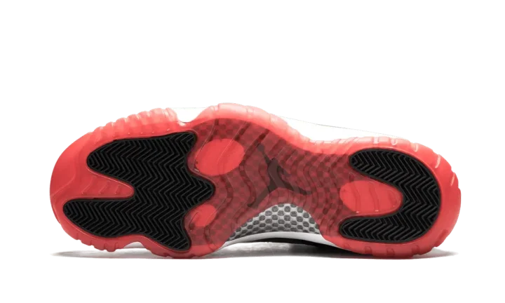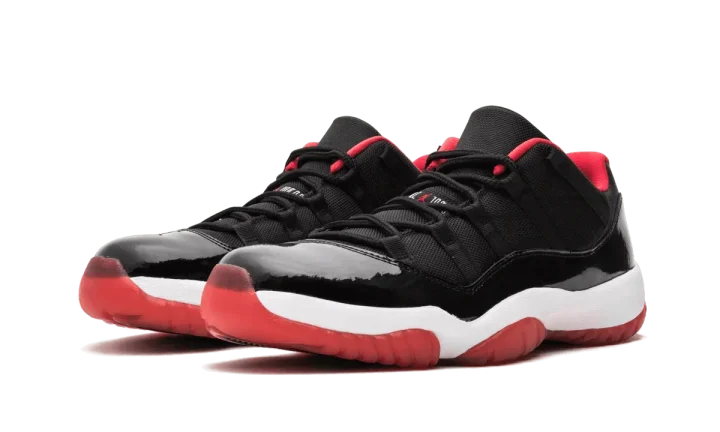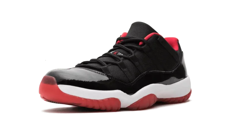 The famous "Bred" colorway of the Air Jordan 11 in the shoe's low-top form. This colorway was spotted on Michael Jordan's own feet as a PE edition way back in 1996 and remained at an almost legendary status until they finally dropped at retail in summer 2015.