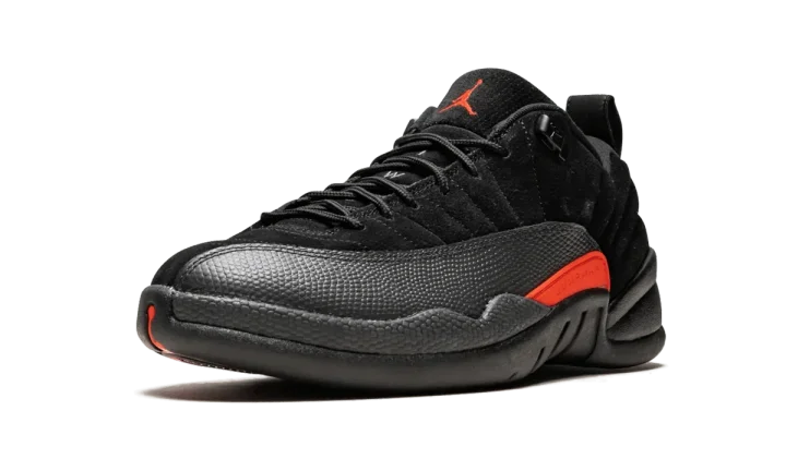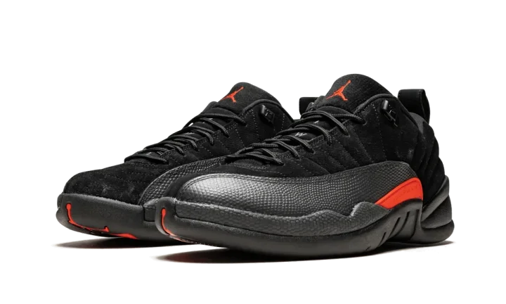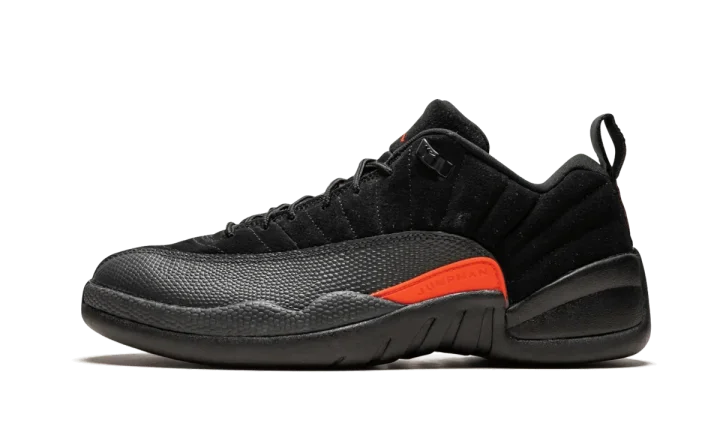 A subtle iteration of the Air Jordan 12 Retro low, these are perfect for everyday wear and fit into any shoe rotation. Buttery black suede coats the uppers, with a black mudguard and black soles to match. An orange set of logos brings out a bit of color.