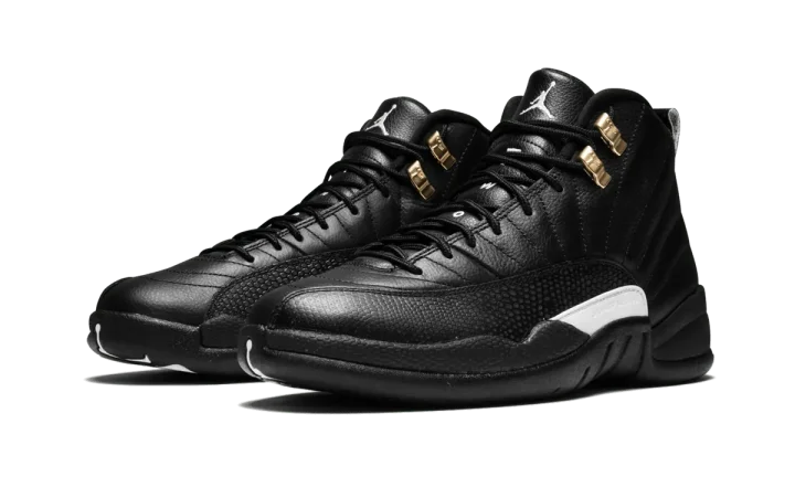 Inspired by a classic poster graphic from the ad campaign of the original Air Jordan 12, this all-new look released in 2016 features a luxe black leather upper with accents in grey and metallic gold. The clean look will go down as one of the best colorways for the twelfth Air Jordan ever.