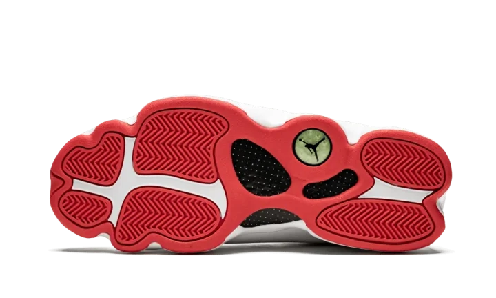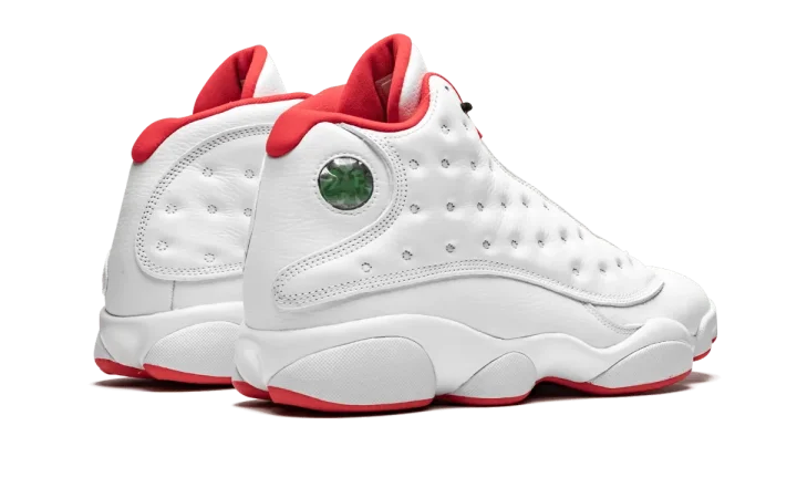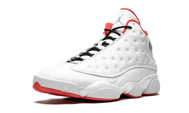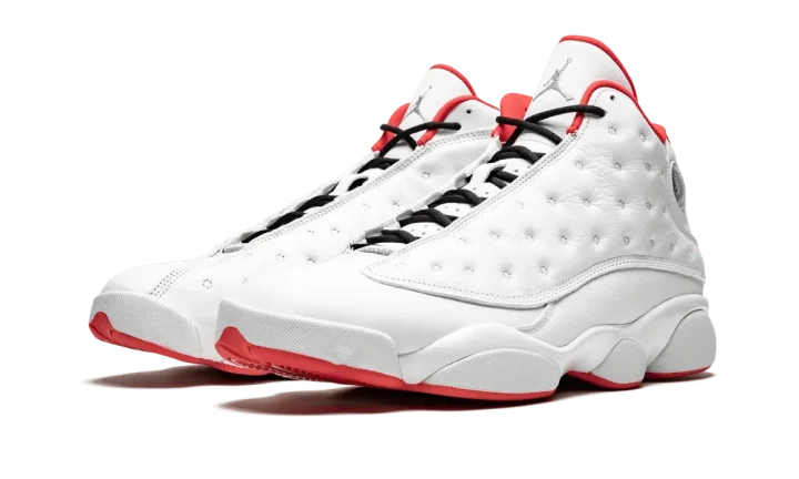 Like the "Pantone" and "Rainbow" packs, Jordan Brand created the 2009 "History of Flight" collection to be a themed set of sneakers meant for display only. It was comprised of Air Jordan models 1 through 2012, each featuring a Chicago Bulls home-inspired colorway in white and red to celebrate the 25th anniversary. However, eight years later, the house that Michael built decides to give the Air Jordan 13 Retro an official release. The design is simple as a red inner liner and rubber outsole complement the white tumbled leather upper. Black laces and Metallic Silver branding complete the slick design